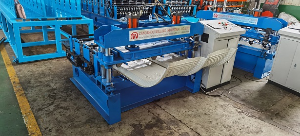In order to meet the special requirements of customers for roof shapes, we have introduced a manual crimping and bending roof coil forming machine. This machine has changed the cold pressing mode of the previous machine. Use the roller to change the shape of the roof slab. This production method is suitable for thin and easily damaged panels. Due to its low cost, small footprint, and simple operation, this equipment is used by customers to produce roof color steel plates.